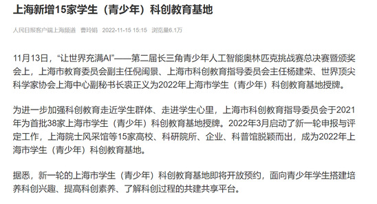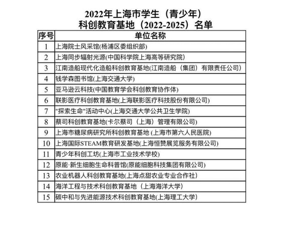碳中和与先进能源技术科创教育基地入选2022年上海市学生(青少年)科创教育基地