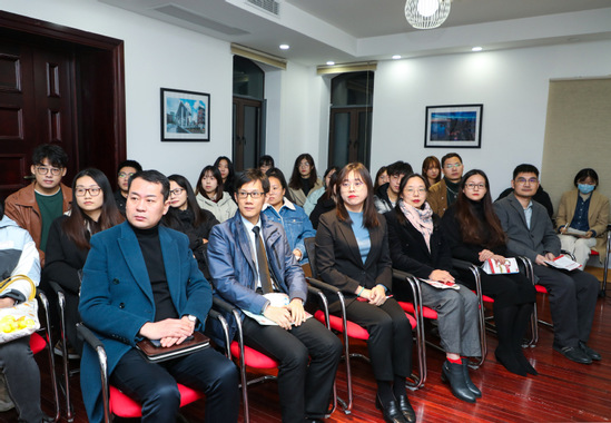 分享会现场 分享会最后,嘉宾和在场师生进行了热烈的讨论和交流。中德国际学院副院长徐芳介绍了中德国际学院多年来与德国企业合作的经验和成果。