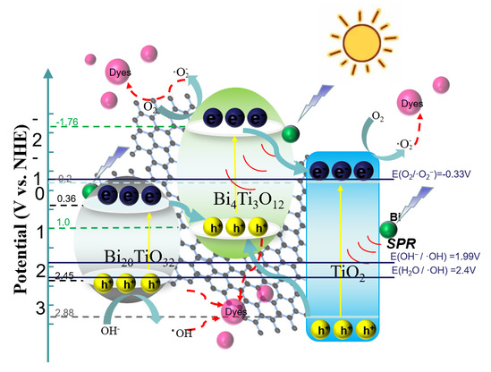 柔性光催化碳纳米纤维复合材料(Bi/BixTiyOz-TiO2/CNFs)光催化机制原理图 供稿:光电学院