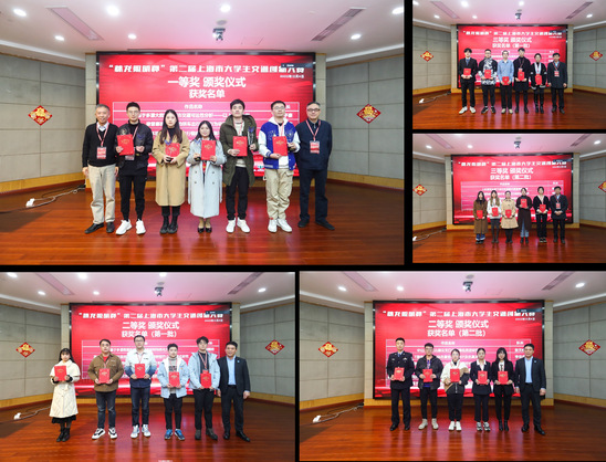 郝润科致辞 本届上海市大学生交通创新大赛以“智能化、可持续、高质量”为主题,吸引了来自同济大学、上海交通大学、上海海事大学、上海工程技术大学、上海应用技术大学、上海公安学院、上海电机学院、上海理工大学等十余所高校的近200名本科生和研究生参加。经过初赛阶段严格的专家评审,确定了7所高校共计27件作品入围决赛,其中本科生赛道入围作品10件,研究生赛道入围作品17件。 决赛分为本科生赛道、研究生赛道1组和2组,分别在管理学院第二会议室报告厅、第二会议室研讨室和610会议室同时进行。经过激烈的现场答辩,依据评审专家组的综合打分,最终角逐出一等奖5支队伍、二等奖11支队伍、三等奖11支队伍。由主办单位、协办单位、承办单位分别为获得一等奖、二等奖、三等奖的团队颁奖。