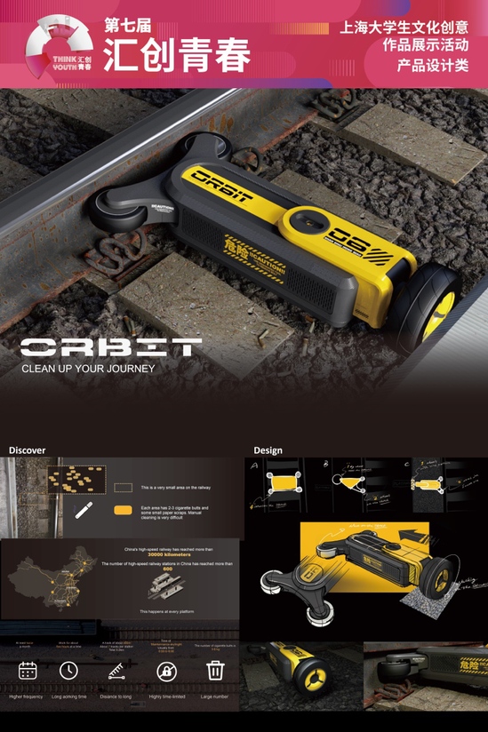 上海视觉艺术学院:《铁路轨道清洁机器人》 在中国,有3万公里长的高铁铁路,600多个高铁站。清理轨道垃圾是一个非常浩大的工程。研究调研发现,轨道垃圾主要为烟头和纸屑,基本位于站台与轨道之间。该设计利用铁轨的独特形状,将之作为清理车的轨道,帮助滑行。针对轨道的石子路,垃圾吸口做了可变动的挡板口,更好的适应轨道状况,防止误吸石子。 供稿:版艺学院 |