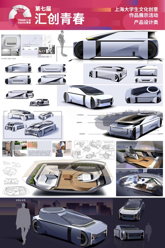 上海交通大学:《轻奢办公交通工具设计》 第三消费时代,消费者开始向品味时代迁移,汽车设计在此背景下同样也需要对品味进行升级,为用户提供奢华体验,灵感源自x洞察传统高品质生活人群,选取特定的造型语言来表现本跑车的独特的价值和魅力,用户驾驶本设计时可以尽情体验高品质的生活,同时本设计也是对国产汽车高端路线的一次探索。