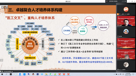 盛春致辞 刘宝林作“基于校企医监研五方融合的卓越复合人才培养体系探索”主题报告,分享了学校成立“医工交叉研究生院”,生物医学工程、光学工程等10个专业打破学科壁垒,与交大医学院及上海36家三甲医院形成深度合作,探索依托医工交叉项目、“医生+教授+工程师”为导师的专业学位研究生培养模式,构建“以培养解决临床实际问题能力”为目标的质量评价体系,促进多学科复合型专业学位研究生的培养的举措和成效。