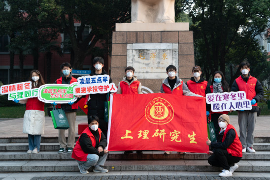 “今日早晨受冷空气影响,上海气温开始明显下降,市区最低气温跌至2℃,郊区零下2℃到0℃,有薄冰……”12月22日是冬至日,迎着凛冽的寒风,一群身着红马甲的研究生志愿者汇聚到军工路主校区南北区门口,开启他们致敬基层劳动者、传递温暖爱心的志愿服务活动。 凌晨五点半,志愿者团队准时集结完毕,配齐物资准备出发。他们分为两支小队,沿着各自的路线到每个后勤岗位上,为门卫小哥、宿管阿姨、保洁工人等一直默默奉献的后勤工作者送上精心准备的温暖礼物。 “今天是传统节日冬至,送您一双手套。这个手套是可触屏的,你们带着不妨碍刷卡。”在志愿者的细心讲解下,保安们一一接过手套,脸上洋溢着被关心的喜悦。 “太感谢你们了,因为疫情,大部分同学都回家了,没想到这个时候你们还给我们送温暖,你们也要照顾好自己。”收到精心准备的御寒礼物,保洁阿姨连连道谢。 “参加完凌晨五点半活动后,我们一边送温暖,一边也是被感动、受教育。学校基层人员的工作并不起眼,但却是学校有序运行、学生如常生活的重要保障。平凡的岗位,不平凡的价值,值得我们每一位学生的敬重,也要向他们学习吃苦耐劳、甘于奉献的劳动精神。”来自管理学院的史文凯同学在参加完活动后分享了自己的感悟。 今年是凌晨五点半暖心感恩活动持续开展的第五年,也是我校研究生开展劳动教育、感恩教育、志愿服务的重要载体。在深入学习宣传贯彻党的二十大精神之际,上理研究生弘扬志愿服务、引领青年发展,以实际行动争做有理想、敢担当、能吃苦、肯奋斗的新时代好青年。