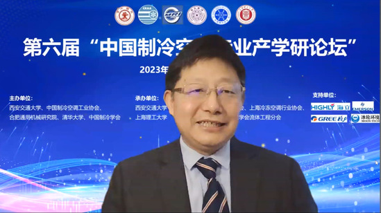 刘宝林主持开幕式 协会副理事长兼秘书长张朝晖代表中国制冷空调工业协会致辞,他从行业现状和行业协会角度分析了开展产学研的重要性,希望通过产学研论坛提高行业科技水平,提高制冷空调产品的竞争力,为国家“双碳”战略做出贡献。张朝晖高度肯定了产学研论坛模式和组织工作,他代表中国制冷空调工业协会对会议组织和参会人员表示感谢。