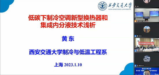 孟庆国致辞 在主会场参加会议的有上海市制冷学会理事长、同济大学张旭教授,上海冷冻空调行业协会邵乃宇秘书长,上海海立电器有限公司周易首席技术官,上海理工大学张华教授、刘宝林教授、武卫东教授、陈曦教授、刘业凤教授、刘妮教授等30位老师和同学。在西安交通大学分会场参会人员有厉彦忠教授、邢子文教授、鱼剑琳教授、王沣浩教授、黄东教授、蒲亮教授、晏刚教授等老师和同学。在嘉宾会场参加会议有中国制冷空调工业协会副秘书长陈敬良、中国制冷学会副秘书长荆华乾等。 开幕式后,论坛进入大会主题报告环节,由张旭教授、邵乃宇教授级高工主持大会主题报告。大会报告包括5个主题报告,分别是中国制冷空调工业协会张朝晖的“双碳目标下制冷空调产业发展的思考”、珠海格力电器股份有限公司黄猛的“光储直柔空调系统关键技术及应用”、西安交通大学黄东的“低碳下制冷空调新型换热器和集成分流新技术发展浅析”、上海理工大学刘业凤的“双碳背景下制冷空调技术和系统案例分析”、上海海立电器有限公司周易的“双碳背景下热泵产品的一些应用和创新”。