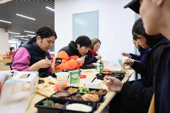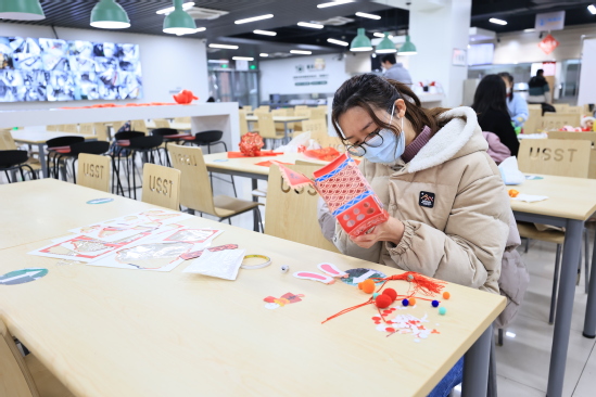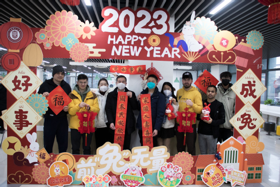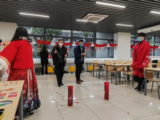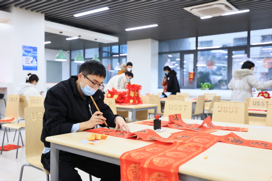 瑞雪纷纷迎祥兔,上理丰收庆年欢。为弘扬传统民族文化,让留校的上理学子暖心喜气过大年,感受新春佳节喜庆祥和的节日氛围,1月15日小年夜,学校为留校学生精心准备了年味十足的年俗活动和丰富可口的年夜饭,师生一起红红火火过大年,欢欢乐乐迎新春。 思餐厅张灯结彩,鎏金福字高贴,红红的中国结窗花……学生工作部(处)、研究生工作部联合材料与化学学院、机械工程学院以及管理学院精心准备的小年夜年俗活动让同学们感受到浓浓的年味。 校党委副书记、副校长盛春来到活动地点,看望慰问留校学生及工作人员,并参与年俗活动。盛春细心询问学生们的留校原因、身体健康情况、假期学习生活安排等,叮嘱同学们寒假期间做好疫情防护,加强健康管理,多与家人、亲人通电话,祝愿大家在校度过一个欢乐祥和、安全健康的春节。 挥毫泼墨写就新春祝福,亲自动手写一副春联,把福字贴在宿舍门上。同学们制作出一盏盏喜气洋洋的红灯笼,看到自己亲手制作的灯笼成型时,乐在心头,喜在眉梢,兴高采烈地展示合影。携手一起猜灯谜,投壶滚铁环踢毽子等年俗活动更是吸引了很多留学生驻足一起玩耍,毽子高飞铁环翻滚,争做百发百中的投壶小能手,年味十足的活动让全体师生感受到新春的氛围。“因为实习的原因留校,本来以为会很孤单,但参与到这样的活动中我感受到了学校对留校学生的关心和关爱,同学们都玩的很开心。”来自光电信息与计算机工程学院的赵拓说道。 牛气冲天 、连年有余、玉兔纳福、团团圆圆、招财进宝……后勤管理中心为留校学生精心准备的丰盛可口的年夜饭热气腾腾出炉。无论家乡在哪里,年夜饭能品尝到“家”的味道。同学们品尝美食、聊天互动,拍照发个朋友圈告诉远方的家人,在学校过年一样温馨快乐。 在细微处见真情,于真情中育新人。多年来,学校坚持“学生不离校,温暖不缺位”,始终高度重视寒假留校学子的学习和生活情况,不断丰富年味活动形式与内容,加强与留校学生的交流沟通,点亮每位同学心灯、传递上理温情,让留校学生们感受到家一般的温暖。学校精心准备了大礼包,各学院全覆盖发放到留校过年学生。留校过年的管理学院2022级工商管理专业张婉丽同学收到了家人的叮嘱:“学校之暖心,我们放心。希望孩子们珍惜光阴,拥抱学识,爱之、乐之,感谢上理的每一位园丁。” 寒风瑟瑟、瑞雪皑皑,有爱就是家,在这“理”过年就是团圆。