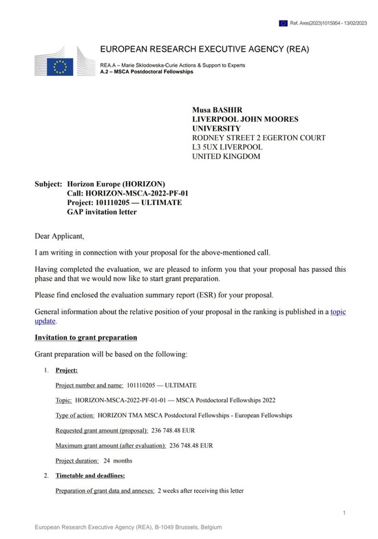 2月13日,经过欧洲研究委员会组织的严格评审,我院2022届博士许子非成功获批欧盟“地平线-2020(Horizon Europe 2020)”研究与创新框架“玛丽·居里学者计划(Marie Skłodowska Curie Postdoctoral Fellowship)”人才基金资助,资助金额约24万欧元,期限为24个月。许子非博士将赴与我校长期合作的利物浦约翰莫尔斯大学(Liverpool John Moores University)开展“漂浮式风力机故障预警与健康管理的智能框架”研究工作(Development of a Fully Intelligent Maintenance Framework for Prognositic Health Management of Floating Offshore Wind Turbines)。此次“玛丽·居里学者计划”的成功获批,是我校大力推进优秀博士人才培养和国际学术交流合作的重要成果,也印证了我校研究生培养质量的提高。 许子非于2016年9月至2022年6月在能动学院师从李春教授、张万福教授攻读流体机械工程博士学位。在此期间,跟随李春教授参与多个国家自然科学基金项目,发表SCI与核心期刊学术论文40余篇,曾两次获得博士研究生国家奖学金。2022年11月起,在利物浦约翰莫尔斯大学围绕漂浮式风力机结构安全与可靠性、结构健康监测、故障预警与健康管理等开展博士后研究工作(合作导师:Musa Bashir,Jin Wang)。许子非此次获得“玛丽·居里学者”人才基金资助彰显了能动学院及李春教授团队持续推进国际科研合作与国际化人才培养的成效。近年来,李春教授团队共有6名博士生获得国家出国留学基金(CSC)资助开展国际合作联合培养,其中2名博士毕业后在英国继续博士后工作。 相关: “玛丽·居里学者计划”(MSCA)以两次荣获诺贝尔奖的波兰-法国科学家“居里夫人”命名,与英国牛顿学者、德国洪堡学者并列为欧洲三大杰出人才计划,在国际上享有很高声誉。该计划面向全球开放,以竞争激烈、申请难度大著称,2022年度在工程技术领域的全球范围资助率约15.37%,许子非博士以总评分95.8%获该项目的资助。