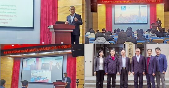 2月21日,维也纳技术大学Andrius Baltuska院士受聘为我校荣誉教授,并面向全校师生作专题学术报告。 在荣誉教授授予仪式上,校长丁晓东致欢迎辞,并向Andrius Baltuska院士颁发荣誉教授证书。校党委副书记、副校长盛春主持仪式。党委(校长)办公室、人事处、科技发展研究院、研究生院、国际交流处、光电学院相关负责人以及光电学院青年骨干教师代表出席仪式。科技发展研究院刘宝林教授、光电学院副院长刘一教授分别向与会嘉宾介绍了上海理工大学总体科研情况和光电学院科研学科建设情况。 随后,学校举办“奥地利科学院Andrius Baltuska院士学术报告暨合作交流研讨会”。光电学院院长庄松林院士在致辞中表示,与Andrius Baltuska院士团队的深度合作,将促进我校在强激光技术领域的国际科研合作,加快光学工程学科的建设,为高水平大学建设提供新动能。中国驻奥地利大使馆雷风云科技参赞及使馆科技外交官高度评价了Andrius Baltuska院士和上海理工大学研究团队长期务实合作的成果,他表示,期待上海理工大学光电学院与维也纳技术大学光子学研究所开展更加深入的合作,为推进共建“一带一路”创新发展、服务构建人类命运共同体,发挥更加积极、有力的作用。 Andrius Baltuska院士做了题为“高能量高峰值功率中红外波段频率转换和应用”(High-Energy High-Peak-Power Mid-Infrared Frequency Conversion and Applications)的学术报告。他从强激光技术的发展历程讲起,着重介绍了高能量中远红外激光技术的发展及其驱动的全新物理现象与规律,特别是在极端非线性光学、空气激光、大气远程遥感、高能太赫兹辐射产生等方面的最新研究进展。报告结束后,Andrius Baltuska院士与在场师生就超强超快激光领域的基础问题及最新进展深入交流和讨论。此次学术交流不仅拓宽了师生们的学术视野,还有助于增进上海理工大学与维也纳技术大学科研团队之间的了解和融合,为双方后续合作发展共赢打下了良好基础。 据了解,Andrius Baltuska院士是强激光技术与强场物理领域的国际领军人物,长期致力于发展超强超快激光和光参量放大技术,其团队的研究有力促进了超短脉冲精密控制在超快光谱和高能物理中的前沿应用。迄今为止,其在《自然》、《科学》等顶级学术期刊上已发表论文200余篇,应邀编撰书籍1部。据Google Scholar学术统计,H-因子达64,总引用超2.1万次。其团队在高功率中红外超快激光、高亮度X射线脉冲、极端强场物理方面的工作,引领了半导体纳米检测,大气精密光谱检测、生物医学诊断和新型药物合成等创新应用。Andrius Baltuska教授于2006年成为维也纳技术大学电气工程与信息技术系教授,2016年当选为奥地利科学院院士。
