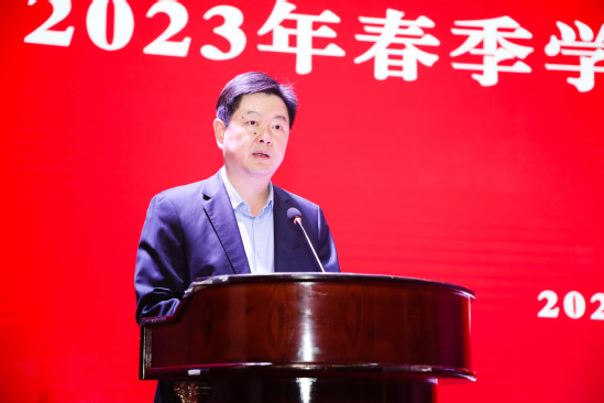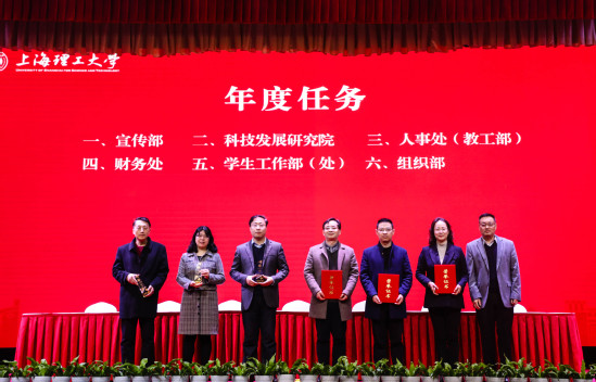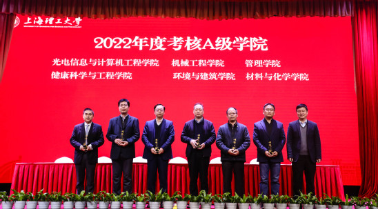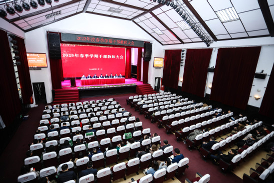 3月1日上午,学校在大礼堂召开春季学期干部教师大会。全体在校校领导、中层干部、学科负责人和民主党派及无党派人士代表、教工党支部书记、辅导员等参会。会议由党委副书记孙跃东主持。 首先,校领导为2022年度获得专项奖励、年度考核A级的学院和部门以及特别表彰部门颁奖。随后,校长丁晓东代表学校,与各二级管理部门负责人及其联系工作校领导逐一签订了2023年度绩效目标任务书和安全防范工作责任书,党委副书记、副校长盛春就绩效目标任务书的制定情况作了说明。 党委副书记顾春华传达了市教卫工作党委和市教委领导在市春季高校党政负责干部会议上的讲话精神。 丁晓东传达了市领导在市春季高校党政负责干部会议上的讲话精神,并对2023年学校党政重点工作进行了全面部署。他指出,2023年是全面贯彻落实党的二十大精神的开局之年,是实施“十四五”规划承上启下、加快高水平大学建设的关键之年。要按照市委、市政府领导要求,胸怀“国之大者”“城之要者”,更加积极主动服务国家战略、服务广大市民、服务所在区域、服务高质量发展,善用上海的功能优势、先发优势、开放优势、文化优势,找准契合点、打造新亮点。要准确把握当前高等教育面临的大势,清醒认识学校客观存在的问题、困难、瓶颈和挑战,昂扬斗志、提振士气,以饱满的精神状态开创事业发展新局面。要紧紧围绕高质量发展这个首要任务,更加突出办学特色,聚焦重点方向、重点领域,不断提高敏锐度,紧跟国家需要、关注发展前沿,避免“后知后觉”,防止“不知不觉”,更要杜绝“知而不觉”。要增强战略定力,坚持一张蓝图干到底,找准方向、久久为功,以“不达目标决不收兵”的勇气和韧劲推动学校各项工作。全校上下要为人才发展营造良好氛围,主动关心人才、服务人才,用适宜发展的环境吸引更多的人才。他强调,要全面加强党的领导,深入推进全面从严治党,以高质量党建引领和促进学校事业高质量发展。要坚持底线思维,扎实做好学校安全稳定工作,为学校高质量发展提供良好的校园环境。