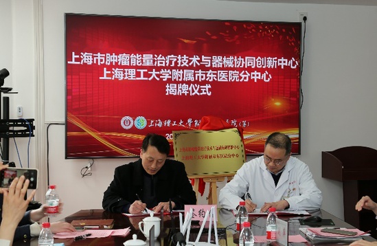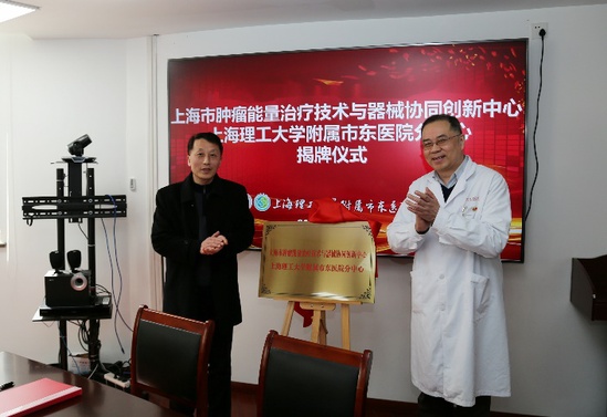 3月3日,上海市肿瘤能量治疗技术与器械协同创新中心上海理工大学附属市东医院分中心成立揭牌仪式在市东医院举行。上海理工大学科研院院长、上海市肿瘤能量治疗技术与器械协同创新中心主任刘宝林带领团队骨干成员和科研院平台管理负责人出席,市东医院党委书记田燕雯、院长贡东卫带领全体院领导和部分医生代表出席,本次会议由市东医院陈旭波副院长主持。 刘宝林介绍了上海市肿瘤能量治疗技术与器械协同创新中心的建设情况,尤其是在肿瘤冷热消融技术和仪器开发方面取得的研究成果和面临的技术挑战,并期待积极融入医院未来的发展规划,整合医院和中心的优势资源,实现强强联合,共同推进分中心的高质量建设。贡东卫介绍了医院在肿瘤治疗方面的历史、科教研发成果、医工交叉项目、优秀学生的双方合作培养体系以及未来医院的发展规划,对双方合作表示高度支持,认为市东医院分中心的成立将进一步推动双方合作全面发展,推进大学科研单位和医疗机构间的双赢合作。 刘宝林和贡东卫共同为分中心揭牌,并签署了《上海市肿瘤能量治疗技术与器械协同创新中心上海理工大学附属市东医院分中心建设协议书》。双方本着共商、共建、共享、共同发展的宗旨,就各领域合作及共同关心的中心建设和发展问题深入交换意见,达成广泛共识,将致力于建设全方位、多渠道、多层次、多形式的科技创新和人才培养平台,打造“学校-医院-企业“多单位协同、公关的协同创新中心。