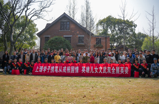 盛春寄语入伍学生 教师代表为入伍新生佩戴光荣花 在今年的春季征兵工作中,我校共有142名同学积极响应党和国家的号召,经政审、综合素质考评和体检选拔,最终有22名男生,1名女生被批准参军入伍。东至黄浦江,西至昆仑山,上理学子们将要奔赴祖国各地的海、陆、空、火箭军、武警等部队履行报国强军的神圣使命,为巩固提高一体化国家战略体系和能力、推进强国强军贡献上理力量。