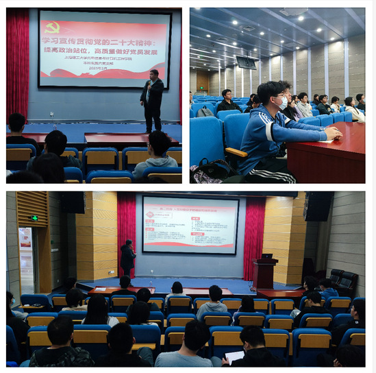 为深入学习宣传贯彻党的二十大精神和习近平新时代中国特色社会主义思想,加快推进学院基层党建工作高质量发展,3月9日,光电学院举办的学习宣传贯彻党的二十大精神系列宣讲在学院报告厅举行。 学院学生党建辅导员以“学习宣传贯彻党的二十大精神:提高政治站位,高质量做好党员发展”为题,为学院30余名学生党员、入党积极分子、入党申请人和共青团员开展专题培训。专题培训围绕党的二十大报告提出高质量党建要求、发展党员工作的相关要求和发展党员工作的流程及常见问题三个方面展开。通过列举发展党员工作中5大阶段和25个环节所需要的材料、应注意事项和常见问题,帮助学院学生党支部做好党员高质量发展工作和入党积极分子教育管理。