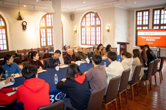 3月9日下午,“听老党员讲过去的故事”师生座谈会在中英国际学院茶室举行。在学校档案馆的支持下,中英国际学院邀请到复兴路校区老校友、老党员董晓、金庆祥与师生座谈,中英国际学院党委书记李妍,副书记、副院长、教工党支部书记蔡卉,校档案馆副研究员吴禹星出席,师生党员代表参加。 会上,董晓、金庆祥为师生党员讲述了国立高机时期学校党组织的发展情况和自己投身革命斗争的经历,回忆了那段可歌可泣的红色校史。他们详细介绍了复兴路校区赵寿先、郑显芝、蒋传宗、孙龙昌四位烈士的英雄事迹,并回忆了赵寿先、郑显芝两位烈士追悼会的情形,希望青年牢记先烈精神,担当起历史的重任,不负新时代赋予的责任和使命。与会师生纷纷表示,烈士们对革命的坚定信念、对党的无限忠诚令人深受震撼和感动,不能忘记革命先辈,要让红色基因代代相传。 李妍指出,中英国际学院始终坚持扎根中国大地办学,自建院就同步成立了党的组织,学院党委历来重视对红色校史的宣传纪念,百年校史是我们宝贵的财富和荣耀,校园革命烈士的精神要代代传承。她提到,复兴路校区校史馆的落成,有利于师生进一步了解学校历史,为师生爱党爱国荣校教育提供了丰富的素材,师生党员更应该以此为契机进一步加强校史学习,并与学习宣传贯彻党的二十大精神相结合,将学习成果转化为干事创业的强大动力。