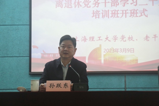 继专题学习会、专题辅导报告会、离退休党支部组织生活会后,离退休党员干部持续学习贯彻党的二十大精神。3月9日,校党校、老干办联合举办离退休党务干部学习贯彻党的二十大精神专题培训班。校党委副书记、关工委主任孙跃东出席开班式并讲话。市教卫工作党委二级巡视员、市教卫工作党委老干部处处长金勤明应邀作首场专题辅导报告。校党校教务长、副处级组织员任惠兰出席开班式。全体离退休干部党支部书记、特邀党建组织员等参会。老干办主任、离退休党委书记李景玉主持会议。 此次培训班旨在深入学习贯彻党的二十大精神以及习近平总书记关于老干部工作、关心下一代工作的重要指示精神,教育引导离退休党务干部把思想和行动统一到党的二十大精神上来,把力量凝聚到实现党的二十大确立的各项任务上来。 围绕加强离退休干部党支部建设、新时代关工委工作,并以党建为引领全面推动新时代学校老干部工作高质量发展,孙跃东在动员讲话中提了三点意见:一是充分把握加强新时代离退休干部党的建设的根本要求。新时代加强离退休干部党的建设,最根本的就是强化离退休干部党支部的政治建设。要把学习贯彻党的二十大精神和习近平总书记关于老干部工作的重要讲话作为离退休干部党支部的首要政治任务,坚持以习近平新时代中国特色社会主义思想为指导,教育引导老同志旗帜鲜明讲政治,自觉维护以习近平同志为核心的党中央权威和集中统一领导,进一步增强“四个意识”,坚定“四个自信”,切实做到“两个维护”。二是充分认识加强离退休干部党支部建设是发挥老同志特殊优势支持教育事业发展的重要抓手。发挥好离退休干部党支部的作用,可以更好发挥组织优势和组织力量,把广大离退休干部党员有效组织起来、凝聚起来,继续做围绕中心服务大局的模范践行者。希望各个支部以示范创建为抓手,优化提升支部党建特色品牌,以高质量党建引领老干部工作高质量发展。三是充分发挥“五老”政治优势和经验优势参与关心下一代工作。中办、国办《关于加强新时代关心下一代工作委员会工作的意见》充分体现了以习近平同志为核心的党中央对关工委工作的高度重视和对广大“五老”的亲切关怀,是推动新时代关工委工作高质量发展的纲领性文件,为关工委奋进新时代、开启新征程指明了前进方向、提供了根本遵循。希望离退休党务干部以此次专题培训为契机,充分发挥示范引领作用,影响带动更多的老同志力所能及地投身关心下一代工作。