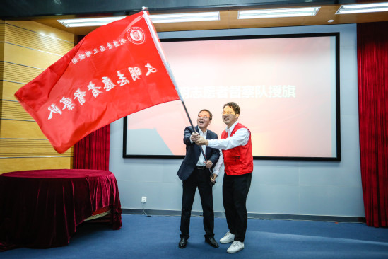 为文明志愿者督察队授旗