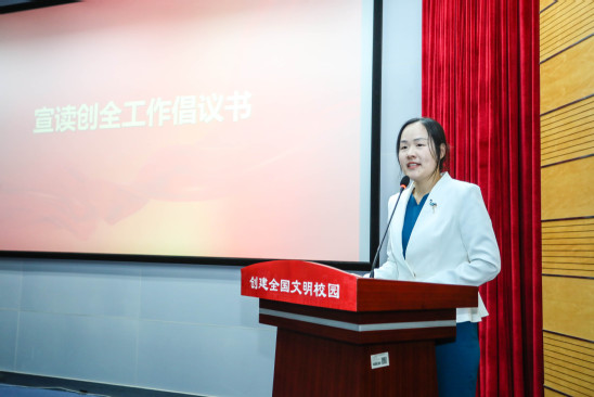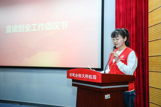学生代表宣读创全工作倡议书