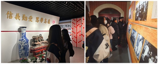 参观校史馆 随后来到刘湛恩烈士故居红色文化主题馆,学员们参观了“热血铸丰碑”和“丹心向春晖”两个红色文化主题展,感受着刘湛恩老校长积极拥护中国共产党抗日民族统一战线主张、积极探索教育救国之道的故事,也探索了代代师生笃行奋进的足迹。
