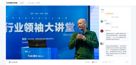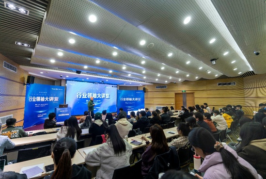 聘任仪式现场 马静波表示,未来管理学院可以与零点有数加强合作,学院将持续把数字产业与专业学位教育进行深度融合,着力提升学院的人才培养质量和水平。 随后,管理学院专业学位教育中心举办首期“行业领袖大讲堂”,袁岳作“洞察和强化青年期的领导力”主题报告。他谈到领导力的重要性以及如何让自己具备领导力,并结合亲身经历讲述了青年在创业时如何锤炼自己的领导力。对于领导者角色,他认为要在实际探索中定位自己,用前沿的领导力去探索,力做标杆人物。报告结束后,袁岳与在场师生就“如何在青年时期平衡输入和输出”以及“如何实现卡脖子问题的突破口”进行深入交流和讨论。 袁岳作报告 张峥谈到“如何具备领导力”这一问题时表示,对于组织领导者来说,要有使命和愿景,才能驱动一个组织走向成功,而对于每一位学生来说,要具备领导力更是体现在学习探索过程中如何打破学科界限。 报告现场 线上直播间同步参加行业大讲堂活动的老师、同学展现了高度的热情,1.6万多人次参与互动、点赞。此次活动交流不仅提升了师生们的批判性思维能力和行业认知,还有助于学生建立新的知识体系及能力架构,也助力管理学院贯彻落实科技兴国和人才强国战略,为社会发展培养更多复合型的管理精英。