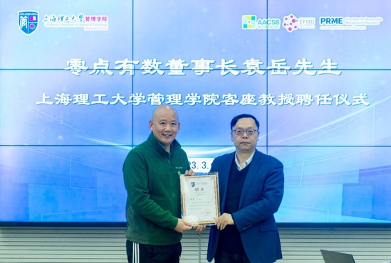3月21日,零点有数董事长袁岳先生受聘为管理学院客座教授,并面向管理学院师生作专题报告。 在客座教授聘任仪式上,学院院长赵来军致欢迎辞,并向袁岳先生颁发客座教授证书。管理学院校友、睿问创始人兼CEO邱玉梅,学院党委书记马静波,学院党政班子成员,专业学位教育中心相关人员出席仪式。仪式由副院长张峥主持。 赵来军回顾了学院的办学历史,重点介绍了目前学院总体发展的特点,以及人才培养、科学研究、学科建设、国际交流、人才引进等方面的建设情况。 赵来军向袁岳颁发客座教授聘任证书