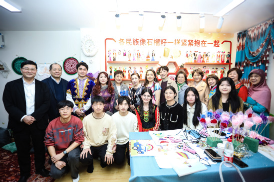 3月22日下午,市委统战部副部长、市民族宗教事务局党组书记王珏一行到我校调研区校联合民族团结工作,杨浦区委常委、统战部部长董鑫旺等参加调研。校党委副书记、纪委书记刘道平,校党委常委、组织部部长、统战部部长孙红等陪同调研。 王珏一行实地走访了学校玛丽亚民族团结教育工作室(以下简称“工作室”),听取了玛丽亚老师代表学校汇报聚焦民族团结、加强民族交往交流交融方面的工作开展情况,观摩了杨浦区少数民族联合会与工作室牵手开展的区校联合民族团结主题日活动,包括民族手工艺品制作、民族乐器演奏、民族舞表演等。活动中王珏与在场少数民族学生亲切交流,关心学生在校学业发展、身心健康和生活情况,了解学校各民族学生依托工作室平台,交流互鉴民族文化、民族特色,感受民族魅力,共绘民族团结同心圆情况,现场气氛热烈融洽、笑声朗朗。 “大家非常富有青春活力,普通话十分标准,希望你们不断提升自身综合素养,积极主动融入到民族团结工作中,与各民族同学加强交往交流交融,共同提高,为民族团结工作贡献力量”。王珏在同版艺学院2020级本科生白玛玉珍交流时,对她以及参与学校民族团结教育工作的学生代表提出了殷切期望。王珏对学校高度重视民族团结工作的相关举措表示充分肯定,并对学校继续开展好民族团结工作提出希望:要最广泛地团结各民族学生,切实让各民族同学无差别融入到日常学习和生活中;要全方位关心学生、引导学生,夯实思想引领基础,将民族团结工作做到学生心间;要按照习近平总书记的要求,使各民族像石榴籽一样紧紧抱在一起。 学校党委一直高度重视民族团结工作,以铸牢中华民族共同体意识为主线,紧紧聚焦少数民族学生教育管理与服务工作,重点打造有利于少数民族学生全面发展的资源平台。2015年,学校支持并组织成立玛丽亚民族团结教育工作室。2018年,工作室入选上海市大学生思想政治教育工作室。目前工作室18个学生团队的133位成员来自全校各民族,聚焦加强民族团结这一工作核心,切实做到民族交往交流交融。学校党委将持续依托工作室,着眼学生发展需求,聚焦学生思想动态、学习生活,深化“石榴花开”民族团结教育主题活动内涵,践行守望相助理念,铸牢中华民族共同体意识。