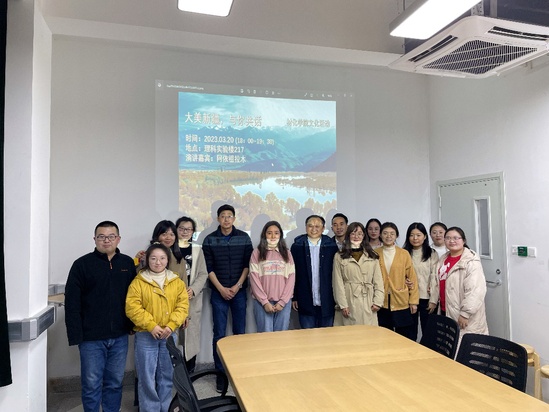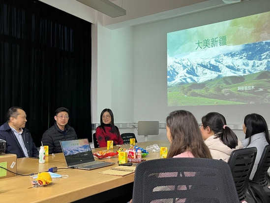 活动现场 本次活动有助于提高材化学生英语学习兴趣,提高英语口语表达能力,为爱好英语口语交流的学生搭建了平台。同时,也丰富了学生课余文化生活,创建良好的文化氛围以及健康向上、积极进取的环境学习氛围。通过交流互动,中外学生相互了解、欣赏、学习对方文化,帮助留学生逐渐认识、熟悉中国文化。中外学生均表示活动受益良多,希望能够继续组织更多这样的沙龙活动。 大美新疆,与您共话 为了丰富材化学院师生人文活动,营造生动活泼的实验室文化,促进多民族文化交流碰撞,在学院工会的大力支持下,材化学院举办“大美新疆”文化座谈会。 3月20日晚,座谈会在理科实验楼217会议室举行。活动特别邀请了来自新疆喀什的维吾尔族姑娘、材化学院大四本科生阿依祖拉木作为主讲嘉宾,介绍了新疆的美景、美食、服饰、建筑等内容,令在座师生心驰神往,大家讨论热烈,纷纷表达对中国民族文化的喜爱和赞美。 座谈会气氛融洽,促进了民族文化的交流和思想的碰撞,也为师生们紧张的科研、学习生活增添了闲趣,大家受益颇多。
