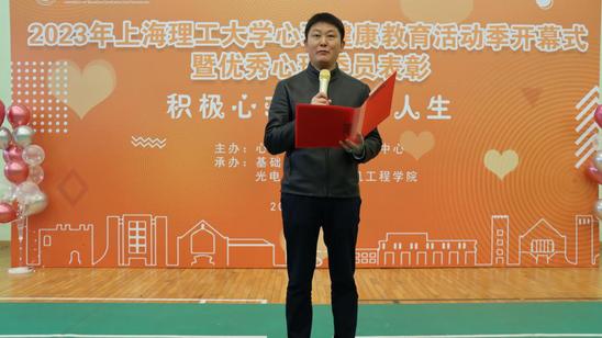 3月24日下午,2023年上海理工大学心理健康教育活动季开幕式暨“优秀心理委员”表彰大会在基础学院羽毛球馆举行。校党委副书记、副校长盛春,学工部副部长、学生处处长何炉进,基础学院党委书记曹英、院长马军山、党委副书记华俊,光电学院党委副书记何可,杨浦区疾控精神卫生分中心综合办主任胡嘉,学校专兼职心理老师、心理委员、杨浦区精神卫生中心的医务人员等200余人参加大会。大会由基础学院学生张小荷主持。