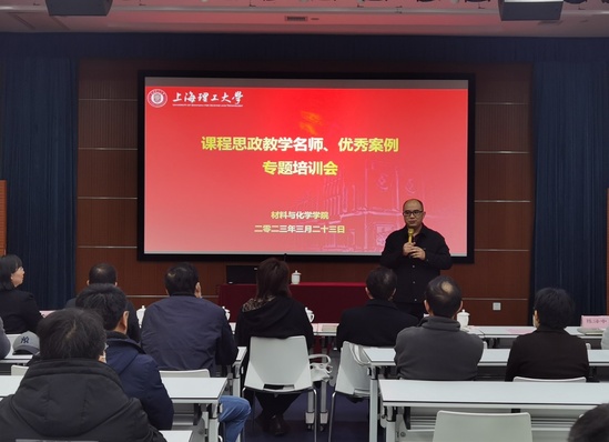 为了进一步提升学院教师课程思政教学水平,3月23日下午,材化学院在先进制造大楼103开展课程思政教学名师、优秀案例专题培训。上海市课程思政教学名师刘宝林教授、上海市课程思政教学设计展示活动一等奖获得者周萍副教授,材化学院党委书记周涛、副院长(主持工作)李贵生、教学副院长李生娟,学院领航团队、领航课程和市级课程思政课程培育课程负责人及其他教师代表参加培训。 周涛在致辞中勉励学院教师在专业教育过程中发挥自身优势,开展大学生思想政治教育,当好学生成长成才的引路人。将课程思政建设与实际生活相结合,与立德树人根本任务相结合,与师德师风建设相结合,切实将课程思政内化于心、外化于行,把立德树人融入日常教育教学全过程。