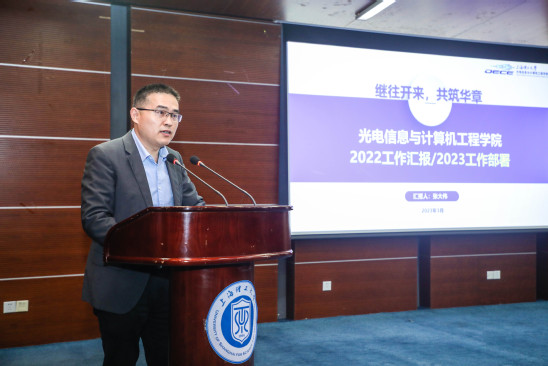 3月29日,光电学院2023年春季教师大会暨决胜创全大会在图文信息中心报告厅举行。校党委副书记孙跃东,光电学院院长、中国工程院院士庄松林,学院党政领导班子成员及全院教师出席大会。会议由学院副院长刘鹏主持。