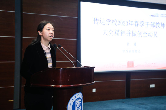 袁媛做创全动员 随后,举行了创建全国文明校园誓师仪式。学院来自党建、教学、科研、管理、学生工作等条线的教师代表和学生代表发出决胜倡议,纷纷按下手印、许下承诺,践行“文明,让上理更卓越”。