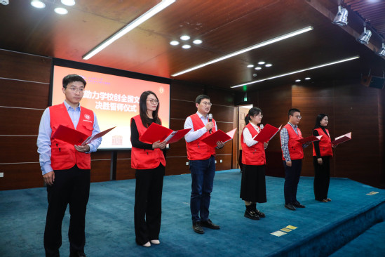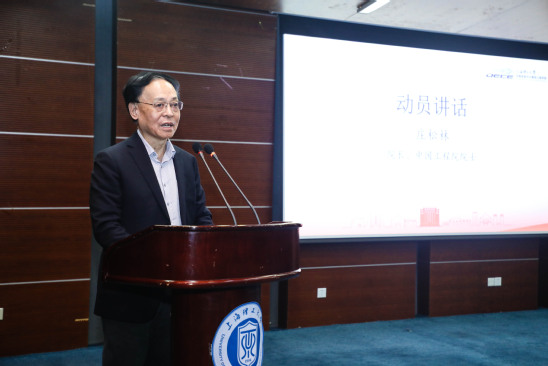 誓师仪式现场 庄松林代表学院对获奖的老师和团队表示衷心祝贺,并向每一位光电人致敬。他期望全院上下:一是要秉持干事创业的精气神,坚持党建引领,踔厉奋发、勇毅前行,以坚强领导力、组织力和战斗力,为学校高水平大学建设贡献光电智慧和力量;二是要保持平衡协调发展,始终瞄准国际科技前沿,以人工智能领域为抓手,推动光学工程、测试科学与技术、控制科学与工程、计算机科学与技术等学科交流、交叉和融合,进行学术合作和科学研究;三是要坚持教学科研齐头并进、相辅相成。“每位教师一定要把教学放在第一位,对待每位学生要像对待自己子女一样,同时要把科学研究摆在重要的位置上。”学院教师要有全局观、大视野,放眼全国、对标一流,主动承担重要科研任务,攻坚克难、勇攀高峰。