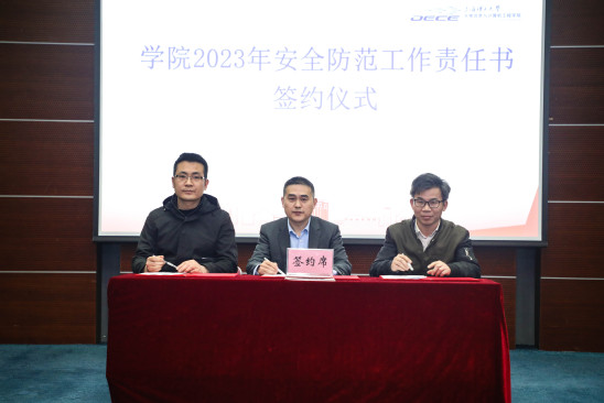 校领导和学院领导班子为获奖教师颁奖 在学院2023年安全防范工作责任书签约仪式上,常务副院长张大伟代表学院与系、团队和实验室安全负责人代表进行签约,进一步在全院牢牢树立安全发展意识、兜牢安全发展底线,做好安全发展屏障,保障学院事业发展行稳致远。
