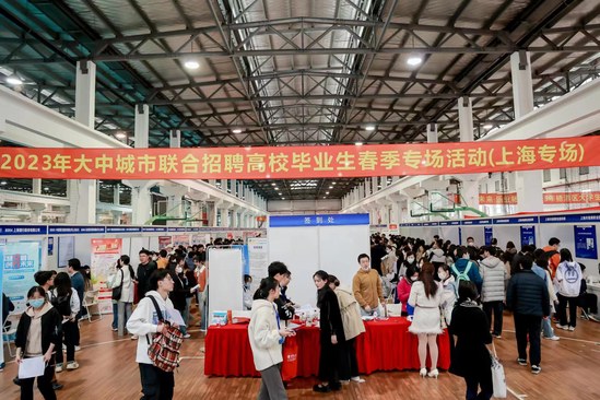 3月31日下午,2023年大中城市联合招聘高校毕业生春季专场活动(上海专场)暨杨浦区大学生校园系列上海理工大学专场招聘会在我校体育活动中心举办。本次活动由上海理工大学、市就业促进中心、市人才服务中心、市学生事务中心和杨浦区人社局共同主办,上海理工大学学生就业指导中心、杨浦区就促(人才)中心承办,同时得到长三角地区嘉兴市南湖区人社局、义乌市人社局、陆家嘴金融城等多方支持。此次招聘活动是区校联动落实长三角一体化发展战略、发挥人才引领作用的重要举措,也是学校开展春季促就业攻坚行动的扎实举措。 活动现场举办了2023年大中城市联合招聘高校毕业生春季专场活动(上海专场)启动仪式。校党委副书记、副校长盛春代表学校致辞,向长期以来关心支持高校毕业生就业工作的各级领导和企事业单位的朋友们致以衷心感谢。随后,学生代表做交流发言,市人才服务中心副主任潘雯丽、市就业促进中心职业介绍处副处长王晓亮、市学生事务中心就业服务部部长周璐璐、杨浦区人力资源和社会保障局副局长钱飞、校学生处处长何炉进及学生代表一起上台,共同开启上海市首个大学生求职能力实训营。最后,校党委副书记、副校长盛春,市就业促进中心副主任赵晓云,杨浦区人力资源和社会保障局副局长王贵平共同启动本次活动。 本次招聘会吸引了300余家优质单位参会,提供岗位1500多个,需求人数超过1万余人,包含本市各类重点行业领域企业、在线新经济头部企业、高新技术企业、专精特新企业、区就业见习实习基地、优质人力资源服务机构以及长三角地区企事业单位等用人单位,涵盖制造业、金融服务、医药制造、土木建筑、软件和信息技术服务等众多行业领域,其中国有企业、中小企业均超过40%,吸引了校内外4000余毕业生到场应聘,同时还有部分低年级学生来到招聘会现场了解情况。招聘会线上线下共收到简历数近1.2万,意向录用3300余人。 会场还设置有“职业指导”服务专区、“政策咨询”服务专区、“征兵咨询”服务专区等三大服务专区,由上海市就业服务专家、乐业导师和首席职业指导师团队提供现场职业指导服务,并提供人才引进落户、租房补贴、大学生就业见习实习、职业培训、劳动关系、征兵入伍等政策咨询服务,为求职人员提供了更加全面的服务要素,充分满足和解决他们的各项人才和就业服务需求,得到了用人单位和大学生的肯定。现场政策咨询和接受职业指导近250人。 活动期间,学校还对参会企业岗位需求进行了精准匹配,组织了二级学院来到招聘会现场开展访企拓岗促就业行动。后续学校将继续根据2023届毕业生就业情况,开展分行业、分领域的招聘会,各学院也将组织学院专场招聘会,为毕业生搭建更多的求职平台,匹配更多的招聘岗位,促进毕业生更充分、更高质量就业。