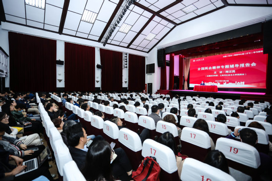 4月3日下午,党委中心组举行扩大学习会,邀请全国政协常委、上海市社会主义学院院长、上海中华职业教育社主任、上海公共外交协会会长周汉民教授传达学习2023年全国两会精神。会议由校党委副书记孙跃东主持。 周汉民从全国两会的指导思想,全国两会会议主要概况,习近平总书记在全国两会期间的重要讲话,政府工作报告要点,国务院机构改革、立法法修改、全国人大常委会、全国政协常委会、最高法、最高检的工作报告等五个方面,全面系统深入地传达了全国两会精神,并结合他个人履职情况,用大量生动案例和详实数据分享了个人学习体会,同时对上理工师生在中国式现代化、高质量发展、高水平科技自立自强、制造强国等时代使命中担当作为提出殷切期望。 孙跃东在总结讲话中对全校学习贯彻全国两会精神提出三点要求,一是领导干部要带头学习贯彻。要把学习贯彻全国两会精神与学习贯彻党的二十大精神相结合,与学习贯彻习近平新时代中国特色社会主义思想相结合,融入即将开展的主题教育,深刻把握“两个确立”,切实做到“两个维护”。二是深入推动事业高质量发展。全国两会对教育高质量发展提出了新要求,要对标教育部和市教委年度重点任务,全力以赴推动高水平大学建设,为教育强国、科技强国、人才强国和制造强国建设作出新的更大贡献。三是在全校大兴调查研究之风。要进一步贯彻落实好中央关于在全党大兴调查研究的要求,不断打开工作思路,找到解决难题的办法,力争通过大调研实现大发展。 全体在校校领导、中层干部、辅导员、离退休干部代表、学校师生理论宣讲团成员、各学院师生代表参加学习会。