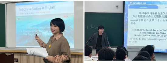 公共英语教学中心举办课程思政公开课活动 学院全面推进《习近平谈治国理政》多语种系列教材进高校进课堂进教材,将“三进”工作明确列入外语学院各专业人才培养规划,指导各语种学生学会用中国理论分析当代中国的发展,理解中国智慧,把握中国时政话语的语篇特点,掌握中国时政文献翻译的基本原则,增强国际传播意识和能力。注重培养学生在分析社会问题、国情研判、创新思维方面的能力,建设体现新时代中国特色、中国风格、中国气派的先进文化,推动中国文化、学术、思想和主张走出去。 学院致力于讲好新时代中国故事,成立对外传播创新青年团队,发挥多语种人才联通世界的特点,着力开展与上海公共外交相关的智库建设、咨政研究、文化交流和人才培养工作,着力提升国际传播能力,以世界胸怀传播中华文化。团队荣获2021年度上海市青年五四奖章集体荣誉称号。