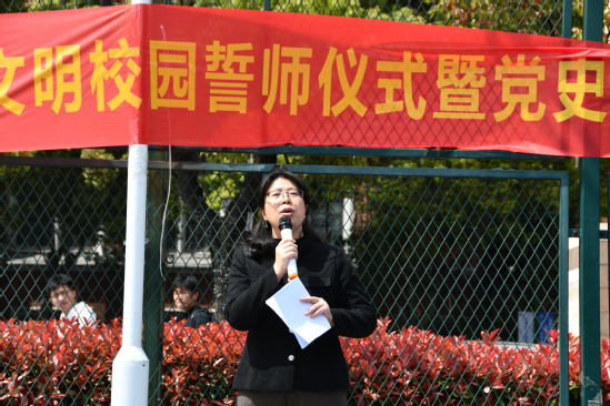 卢萧致辞 随后,学生代表崔一凡宣读“创建文明校园”倡议书,代表学院党委向大家提出:坚定理想信念做讲政治的先锋表率;勇担创全之任做强效能的先锋表率;对标德才兼备做红底色的先锋表率。任惠兰为本次活动打响发令枪,预示学院全面开启创全工作,也为接下来的党史学习教育嘉年华活动打响第一枪。