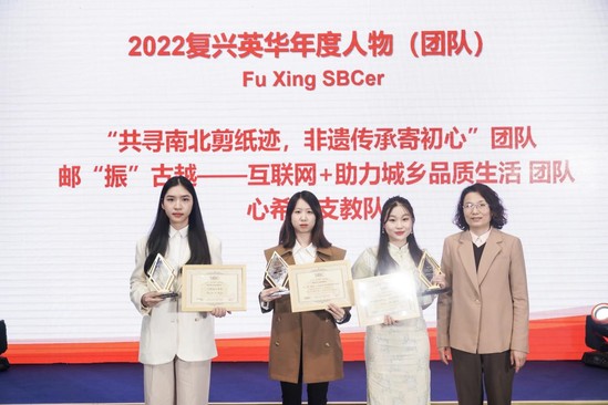 国家奖学金颁奖现场 创全有我·复兴英华 一部慷慨激昂的人物短片视频展现了过去一年里中英学子的闪耀瞬间和学院的育人理念。心希望支教队、“共寻南北剪纸迹,非遗传承寄初心”团队、邮“振”古越互联网+助力城乡品质生活团队分别获得了“复兴英华”年度团队奖。