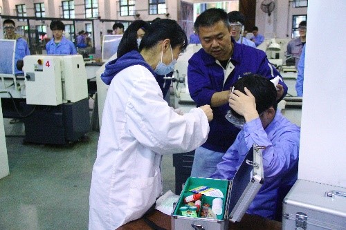 工程实训中心是金工实习教学过程实施的实践训练场所,集安全与教学于一体,日常上课密集、学生人数多、机械类器械操作频繁,此次演练以真实的实训教学现场为背景,以假设学生因绊倒造成头部撞到车床而受伤为切入点,师生共同开展安全急救,以检验师生应对安全事故处置的应急意识和掌握程度,时刻警钟长鸣,始终将安全教育贯穿实践教学的全过程。近年来,在学校实验室管理处、保卫处等相关职能部门支持下,工程实训中心秉持以师生安全为本的理念,加快设备维护升级、更新安装安全设施、翻新修缮实训场地等,守牢实训实践的安全底线,为创新工程实训教学做好安全保障。 公共实验中心组织开展此次安全急救演练,旨在时时处处念好责任“紧箍咒”,安全隐患“零容忍”,切实做好实验室安全管理工作,进一步落实校园安全精神要求,助力学校创建全国文明校园。此次演练得到后勤处、保卫处、资产设备与实验室管理处的支持和协助,保卫处副处长赵磊结合近期各地发生的安全事故,给师生做校园安全防范提示,期待与师生携手创造安全校园。后勤处卫生科科长李长林介绍了安全急救处理流程与方法,并和同学们进行互动交流。创新创业学院院长、公共实验中心主任郝润科在总结发言中表示,这是一场生动的安全教育实践课,正值学校创建全国文明校园的攻坚阶段,希望同学们在实训过程中,牢固树立安全防范意识,为学校创全做出应有贡献。