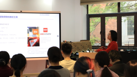讲座现场 伍慧萍教授以“当前中德关系的趋势动向”为主题,从“中德关系的合作基础”“时代转折:德国对华政策调整背景”“德国对华政策调整趋势”三方面进行分析,首先从中德政治合作基础与基调、经贸合作基本面以及朔尔茨访华后续动向三方面结合实例和相关文件分析德国对华政策调整的背景,重点分析了德国对华政策调整的背景和趋势。伍慧萍认为,当前德国对华政策的分歧主要存在于部委之间、政党之间和政要之间,德国推迟发布中国战略和国家安全战略就充分说明了这一点。中德关系仍然保持不脱钩且重视欧洲采取统一对华立场,但要降低对中国的依赖性,并加强盟友协调。 整场学术报告,伍慧萍从中德关系的现状出发,结合德国政府发布的相关报告和主流媒体的声音等,分析德国对华政策调整趋势的细致而又深刻,多方面信息随着严密的逻辑循序展开,为在场师生带来了一场学术盛宴。