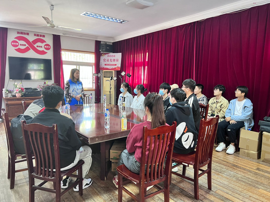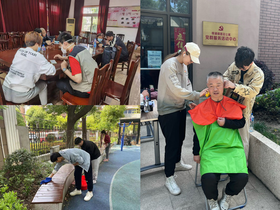 党总支书记张群丽为学生党员讲党课 党课结束之后,学生党员们又开展了服务居民的劳动项目,为社区老人理发、教老人使用智能手机、打扫公共活动区域等。