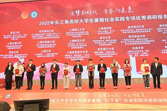 4月24日,由共青团安徽省委员会、中共安徽省委宣传部、安徽省文明办、安徽省教育厅、中共宣城市委员会主办的2023年安徽省暑期“三下乡”社会实践活动启动仪式在宣城举行,会上表彰了2022年度长三角高校大学生暑期“三下乡”社会实践专项活动优秀项目,我校推送的“重温习近平总书记的绿色足迹—长江流域生态环境开发与治理的实证调研”获优秀调研报告,“绿迹长江实践团”获优秀团队。