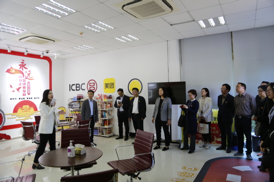 为深入学习贯彻党的二十大精神,扎实开展学习贯彻习近平新时代中国特色社会主义思想主题教育,探索校企党建共建融合式发展新模式,5月9日下午,理学院党委书记孟宝全、院长宇振盛一行赴中国工商银行上海分行杨浦支行开展“砥砺奋进新时代 勇毅前行向未来”党建联学共建活动。上海理工大学主题教育第三指导组黄慧、蒋欣桐出席活动。 理学院一行在工商银行杨浦支行解说员的带领下参观了杨浦支行营业厅,工作人员热忱的服务将“便民”工程落到实处,大厅内设置了“自助办税服务区”“美团骑手爱心驿站”,扎实推动“为民办事见实效”,处处彰显将党建工作与中心工作相融合的理念。