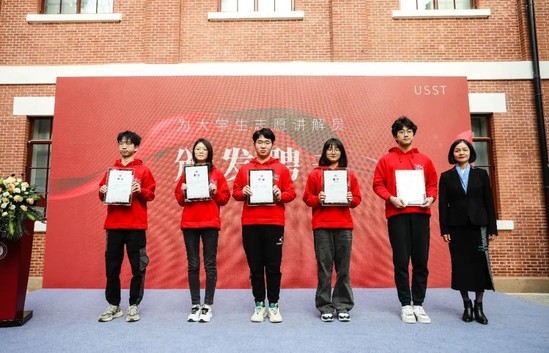 校领导为宣讲服务队成员代表颁发聘书 学校举行“人物定义大梦想 青春书写正能量” 2022大学生年度人物评选,最终评选出10位大学生年度人物和10位大学生年度人物提名。接下来这些优秀代表将走进同学们中间,走进附属中学开展宣讲,发挥朋辈榜样的示范引领作用。