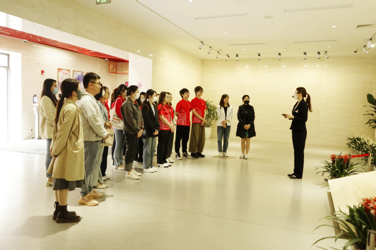在世界博物馆日即将到来之际,为更好地为学校开展学习贯彻习近平总书记新时代中国特色社会主义思想主题教育提供爱国主义教育基地讲解支持,进一步提升湛恩故居志愿讲解员讲解素养,传播红色校史文化,5月12日下午,档案馆组织湛恩故居志愿讲解员前往国歌展示馆进行现场实训。上海市优秀讲解员、红途讲师、国歌展示馆讲解员栾炎老师对志愿讲解员进行了实地培训。 栾炎仔细向大家讲解了国歌展示馆的展陈,具体示范了如何以主题聚焦、主线贯穿的方式,讲述《义勇军进行曲》的诞生、传播、立法及其深远影响;如何将实物展示、场景再现、多媒体互动穿插其中,以激发观众兴趣,提升参与感;如何让参观者生动了解《义勇军进行曲》成为中华人民共和国国歌的历史过程。示范讲解结束后,栾炎与志愿讲解员进行座谈交流。她谈到讲解时要重视开头结尾,给参观者留下好印象;讲解内容须多讲多练,熟能生巧;根据不同群体,应灵活调整讲解内容侧重点;同时尽可能侧身引导,注意礼仪规范等。 档案馆馆长孔娜在总结中表示,栾炎老师对内容的熟练掌握、表达方式及仪态规范等都值得我们学习。志愿讲解员对参观动线和节奏把握具有主导作用,每位讲解员都应深化内容,灵活运用讲解技巧,形成个人讲解风格。她欢迎国歌展示馆同仁到学校交流,开展馆际协作,互学互鉴,共同为文博事业蓬勃发展做出积极贡献。