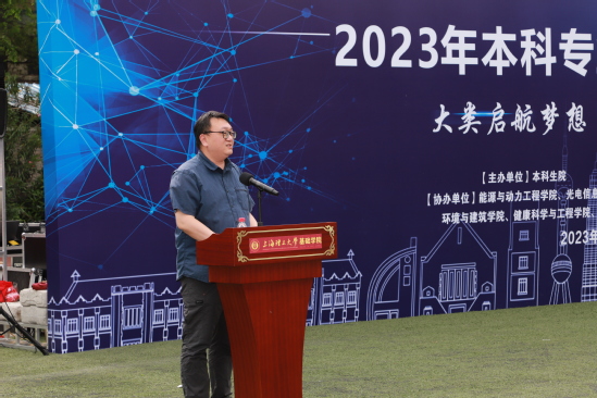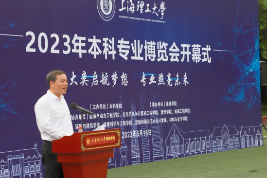 为贯彻落实党的二十大报告精神,进一步落实学校打造一流本科、建设一流专业、培养一流人才的目标和要求,深入推进大类招生与培养,更好展示专业建设成果,推动2022级本科生结合自身实际选择专业方向,5月16日下午,由本科生院主办、基础学院承办、各专业学院协办的2023年本科生专业博览在军工路1100号校区操场正式拉开帷幕。党委副书记、副校长盛春出席开幕式,本科生院及各相关专业学院党政领导、教师代表、学生代表、各学院联络员、辅导员以及2022级全体本科生共同参与活动。活动由基础学院院长马军山主持。 本科生院院长、教务处处长、学工部部长甘屹为开幕式致辞,希望各专业学院系统梳理专业建设整体情况,为同学了解相关信息做好专业化服务并持续加强专业建设,帮助同学解决学什么、学成什么样、怎么学的问题,为同学在大学期间乃至终生学习发展奠定扎实的基础;希望同学们利用好专业博览会,有序完成大类分流,培育创新意识、激发创造活力,促进专业建设,助力学校特色发展,为形成高质量人才培养体系注入澎湃动能。