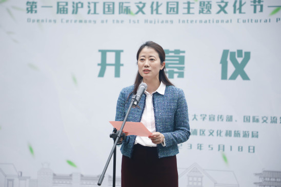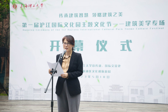 5月18日下午,由党委宣传部、国际交流处以及上海市杨浦区文化和旅游局主办,以“传承建筑智慧,领略建筑之美”为主题的第一届沪江国际文化园主题文化节开幕式在北欧大草坪举办。杨浦区委宣传部副部长、区文化和旅游局党组书记胡琳,副局长朱音奇,校党委常委、宣传部部长叶磊及环境与建筑学院副院长王丽慧出席开幕式。活动由国际交流处副处长徐琳主持。 叶磊在致辞中提到,上海理工大学是一所历史悠久的高等学府,有着117年的办学历史,是全国重点文物保护单位,至今校园内依然保留着32幢沪江大学近代建筑。本次文化节是学校融入上海杨浦生活秀带国家文物保护利用示范区建设的主动作为,希望以丰富的人文盛宴,带领师生共同领略上理建筑之美,从建筑中读到百年校园的历史底蕴、独一无二的人文景观以及精彩纷呈的多元文化,在美丽的校园中守正创新、砥砺奋进。