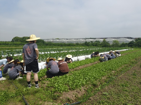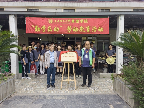 劳动教育是中国特色社会主义教育制度的重要内容,加强劳动教育,是培养担当民族复兴大任时代新人的内在需要。为落实“五育并举”的育人理念,加强对大学生的劳动教育,形成长效劳动育人机制,基础学院积极联系社会资源,为学生建立稳定的劳动实践场所,教育同学们对知识躬身修行、用身体丈量“世界”,5月21日,基础学院劳动教育实践基地揭牌仪式暨“勤学乐动”劳动教育活动在上海夏茉生态农业有限公司(夏茉农场)举行,基础学院院长马军山,副书记、副院长华俊,夏茉农场经理鹿国涛,基础学院老师代表及40余名同学参加活动。 马军山与鹿国涛共同为劳动教育实践基地揭牌。鹿国涛简要介绍了农场的基本概况和劳动教育活动的课程安排。马军山表示,希望同学们积极参与劳动教育活动,用汗水去体会劳动成果的来之不易,用辛勤的劳动去磨练自己的品格,锻炼自己的意志,培养正确的劳动观,不断提高自己的劳动能力。