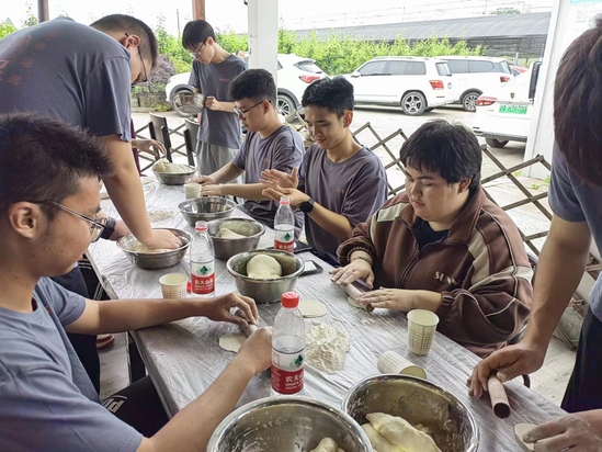 包水饺 劳逸结合,提升团队合作能力 劳动间隙,组织拔河和撕名牌游戏,游戏将劳动带来的疲惫一扫而光,大家再次感受到劳动人民的智慧。