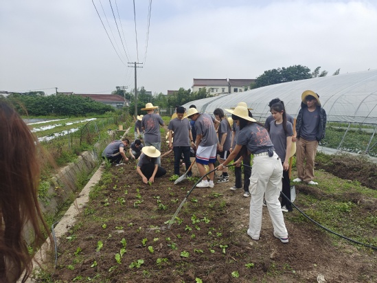揭牌仪式 挥汗如雨,用汗水体验劳动、磨练心志 五月的农场,骄阳似火,大家的劳动热情似骄阳一样,热情高涨。同学们头戴斗笠,不惧炎热,不吝汗水,在带教老师的指导下,一丝不苟的取苗、翻土、栽种、浇水,每一样工作都用心、用力去做。有的同学手上磨起了水泡,但没有一人叫苦喊累,每项工作都井然有序、有模有样。