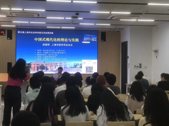 5月31日,上海市哲学学会主办的“第22届上海市社会科学普及活动周”讲座在我校举行。本次报告采取线下授课与线上直播相结合的方式,吸引了全国各地的数百位师生聆听。活动由马克思主义学院副院长胡绪明教授主持。 上海市哲学学会会长、复旦大学文科资深教授吴晓明担任本次活动主讲嘉宾并作“中国式现代化的理论与实践”专题报告。他表示,就中国式现代化的当代意义来说,中国式现代化-马克思主义中国化的当代形态是中国特色社会主义,在新的“历史方位”上展现出三重意义,即对于中华民族、世界社会主义和人类整体的发展所具有的重大意义,而这样的意义正应当被理解为“世界历史意义”。中国式现代化之所以展现出世界历史意义,是因为它在完成现代化任务的同时,正在开启人类文明新形态。 在互动提问环节中,吴晓明教授就学生提出的“如何在现代化的同时又不会被现代化所奴役”这一问题做出了进一步的回答和阐释。他指出,首先,现代化不是短时间一蹴而就的;其次,需要在历史性实践当中逐渐地展开合规律性合目的性过程,并且逐渐地使得诸多的可能性转变成现实性。譬如党的二十大报告中提及的“人类命运共同体”“大道之行”“天下为公”等等理念都属于新的文明形态,我们在历史发展当中已经不断把这样的理念提示出来了,有待我们与国际社会共同努力。报告引经据典,以丰富的哲学理论和生动的事例引导大家思考如何从理论与实践上把握中国式现代化这样一种历史进程;他鼓励青年们要勇于承担时代的责任,一方面警惕“外部反思”是阻碍思想发展的最大障碍,另一方面要在中国式现代化的伟大实践中踔厉奋发、勇毅前行。 最后,上海市哲学学会副会长兼秘书长李家珉教授作精彩点评。他指出,报告立足理论、实践和意义三重维度,对中国式现代化作了既深刻又生动的演讲,有学术视野的高度、哲学分析的深度和感染听众的力度;报告有助于我们深入理解中国共产党为什么能,中国特色社会主义为什么好,中国化时代化的马克思主义为什么行,尤其是激励青年学生脚踏泥土芬芳,胸怀星辰大海,展望诗和远方,坚定不移跟着党在中国式现代化征程上奋勇争先、建功立业。 许多师生表示,能够亲临现场聆听吴晓明教授的学术报告是非常难得的机会,并希望学校今后多举办高质量的学术活动。